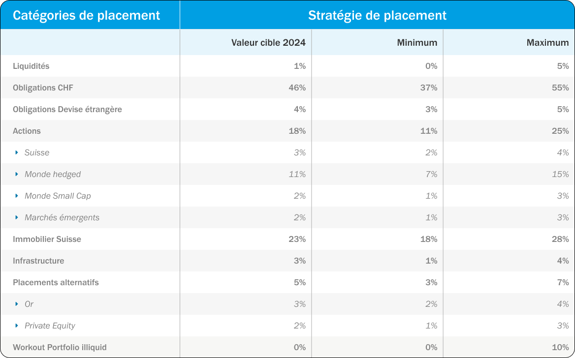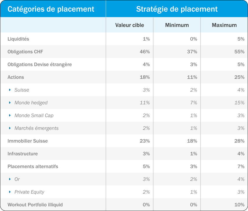 L’allocation stratégique des actifs est le principal facteur de succès et est adapté aux obligations de la caisse de pension.